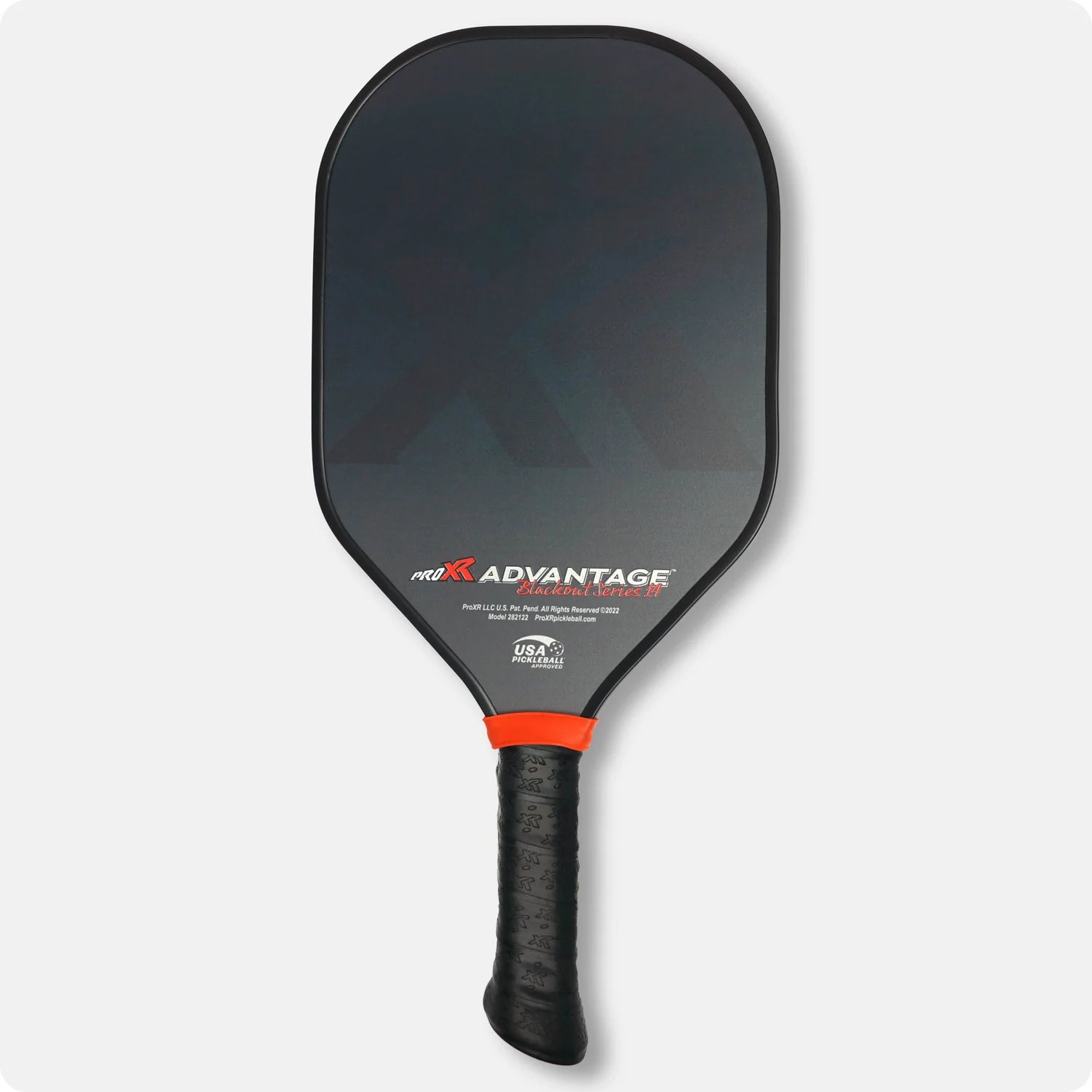 ProXR Pickleball's Blackout Advantage paddle is an updated version of the original Advantage model. This paddle features a premium fiberglass face and increased core thickness, delivering precise feedback on every shot. The Blackout's power is further elevated by an XR-23 handle, available in Standard and Slim Continental orientations. Read more below.