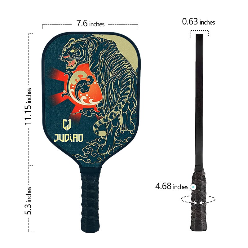 The JUCIAO Graphite Carbon Fiber Paddle is expertly crafted to provide a balanced and comfortable feel in your hand. It is available in a variety of vibrant colors and designs, making it a stylish addition to your pickleball gear.