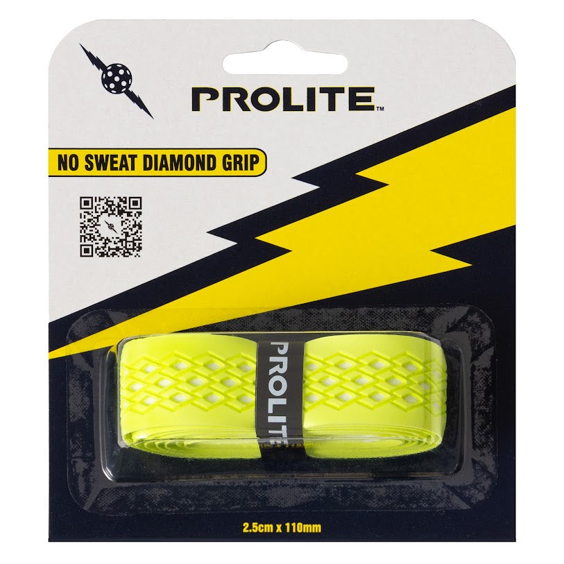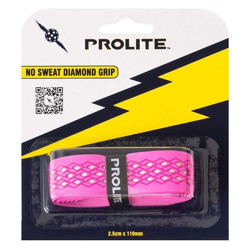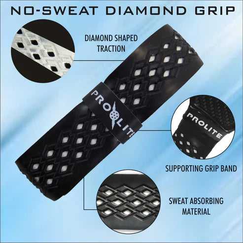 Widely known as the best grip in Pickleball! The No Sweat Diamond Grip is the best grip for the most sweaty and hot conditions, specifically designed to channel sweat away from your grip and hand. Its aggressive, diamond shaped traction, is designed for maximum control and less torque in hand at ball impact. Cushioned surface offers comfort and a firmer feel limiting extra vibration.