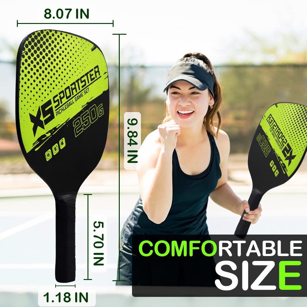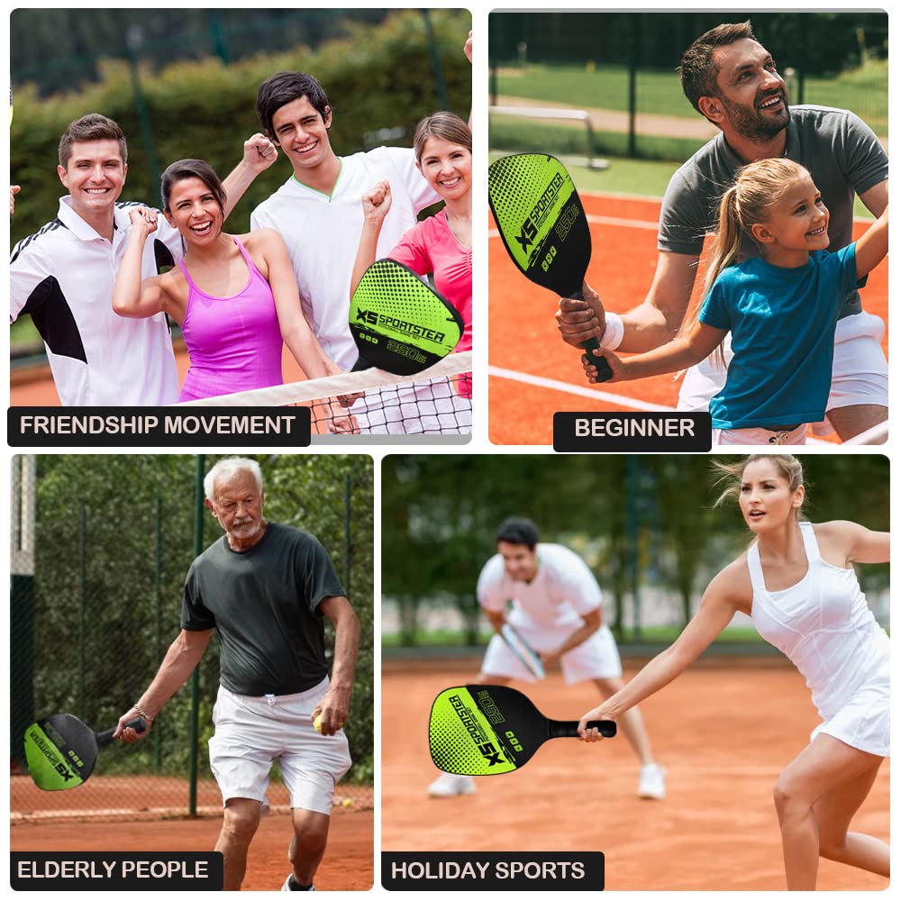 [HIGH QUALITY PICKLEBALL PADDLES】Pickleball paddles the surface is made of high-quality glass fiber, and the middle is made of polypropylene honeycomb composition. The weight is very light, and pickleball set can cushion the sound of every hit of the ball, so pickleball will be quieter.
