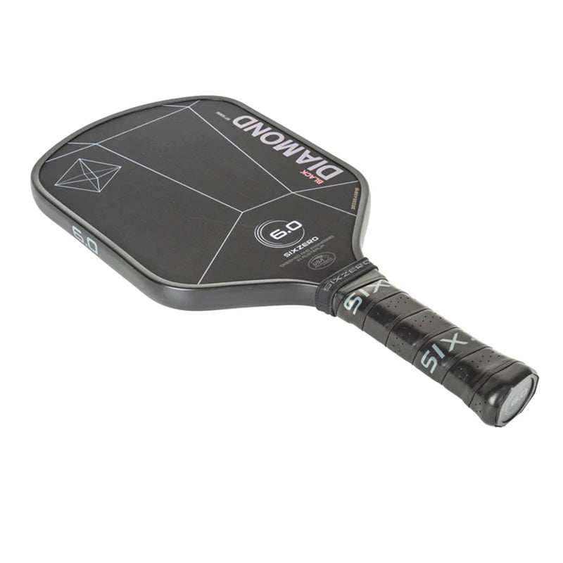Introducing the first Raw Composite pickleball paddle designed for players looking for extra power combined with a permanent textured surface for maximum spin--the Six Zero Black Diamond Power Pickleball Paddle is HOT! The Black Diamond Power features a slightly flared shape which optimizes the sweet spot and gives you tremendous reach and control over the ball, allowing you to place shots exactly where you want them. The proprietary Premium Japanese composite textured surface combined with new Carbon Fusion Edge Technology, adds strength, power and controlled pop along with amazing spin, grip and feel on the ball. Tried and tested to ensure the ultimate power engine for lasting performance, the Premium Honeycomb Polymer 16mm thick core gives the best power to control ratio. Each Six Zero Black Diamond paddle has its own Unique Serial Number.