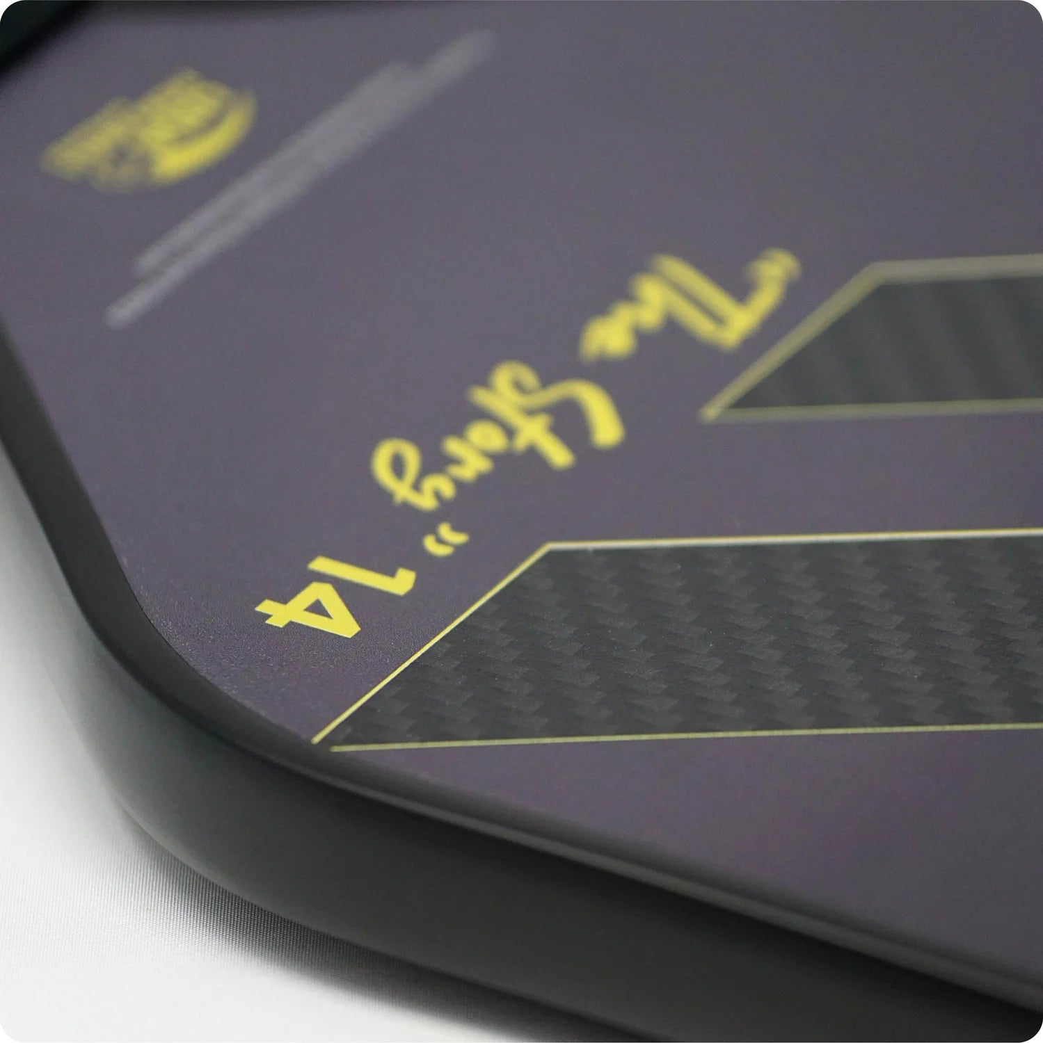 The first of its kind, "The Story" brings you the best of both worlds. This paddle is equipped with a premium fiberglass forehand for maximum power and a carbon fiber backhand for enhanced control.